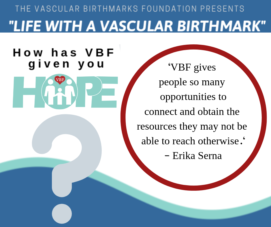 “VBF gives me hope because of the constant growth and impact it is making. So many people are being reached through VBF with learning how to help their child or themselves with the different medical aspects, treatment, facebook lives, connecting with other families that are currently going through a similar situation and just having that support. VBF gives people so many opportunities to connect and obtain the resources they may not be able to reach otherwise.“